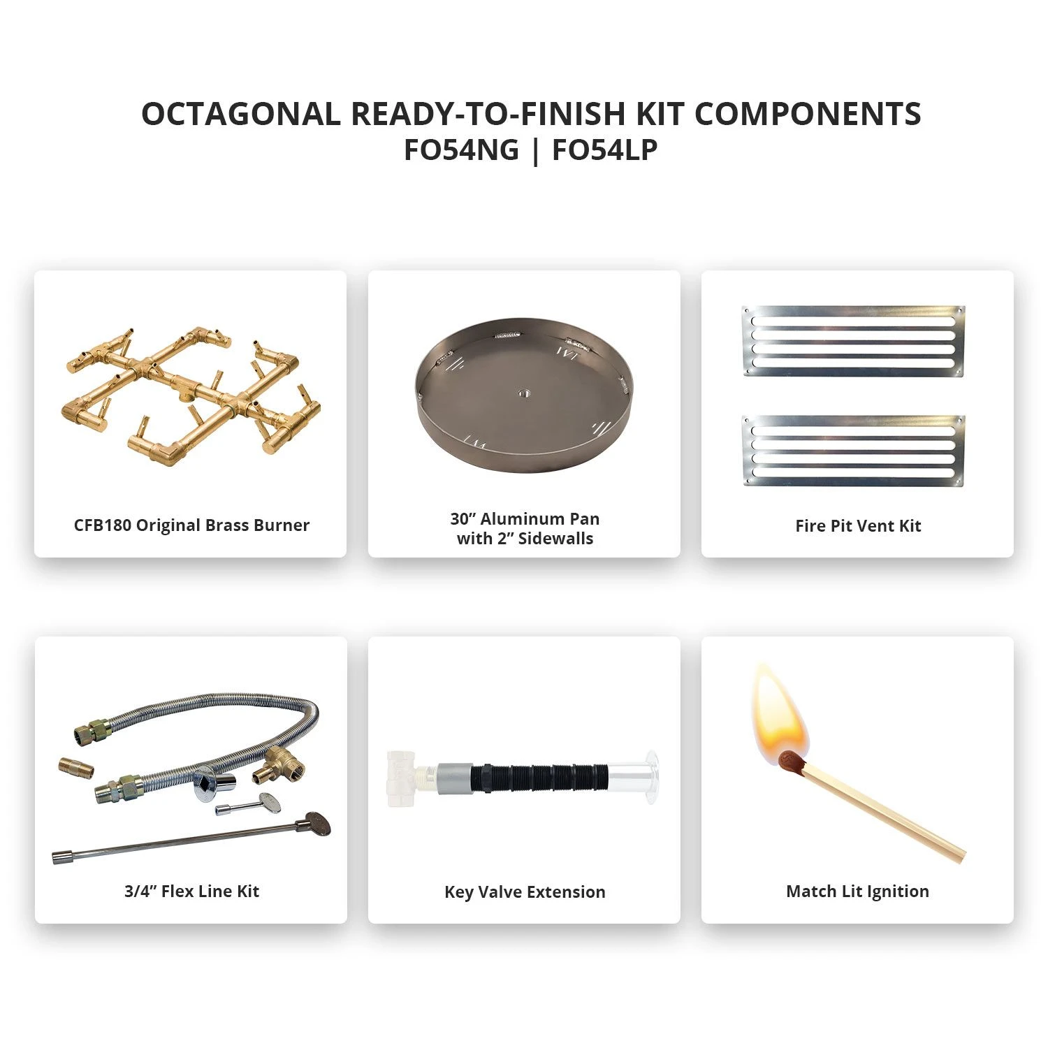 Crossfire by Warming Trends 54-Inch Octagonal Ready-to-Finish Fire Pit Enclosure with Gas Burner Kit