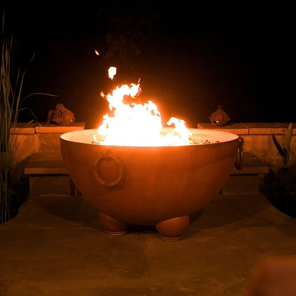 Each fire pit is hand made from 1/4-inch thick carbon steel to produce a long lasting and durable product while the natural iron oxide finish is designed to patina on the outside which will darken with time and create a permanent one-of-a-kind finish on the fire pit. The interior of the fire pit is coated with a high temperature resistant paint and has a 1.5″ drain in the bottom to allow rain to drain.