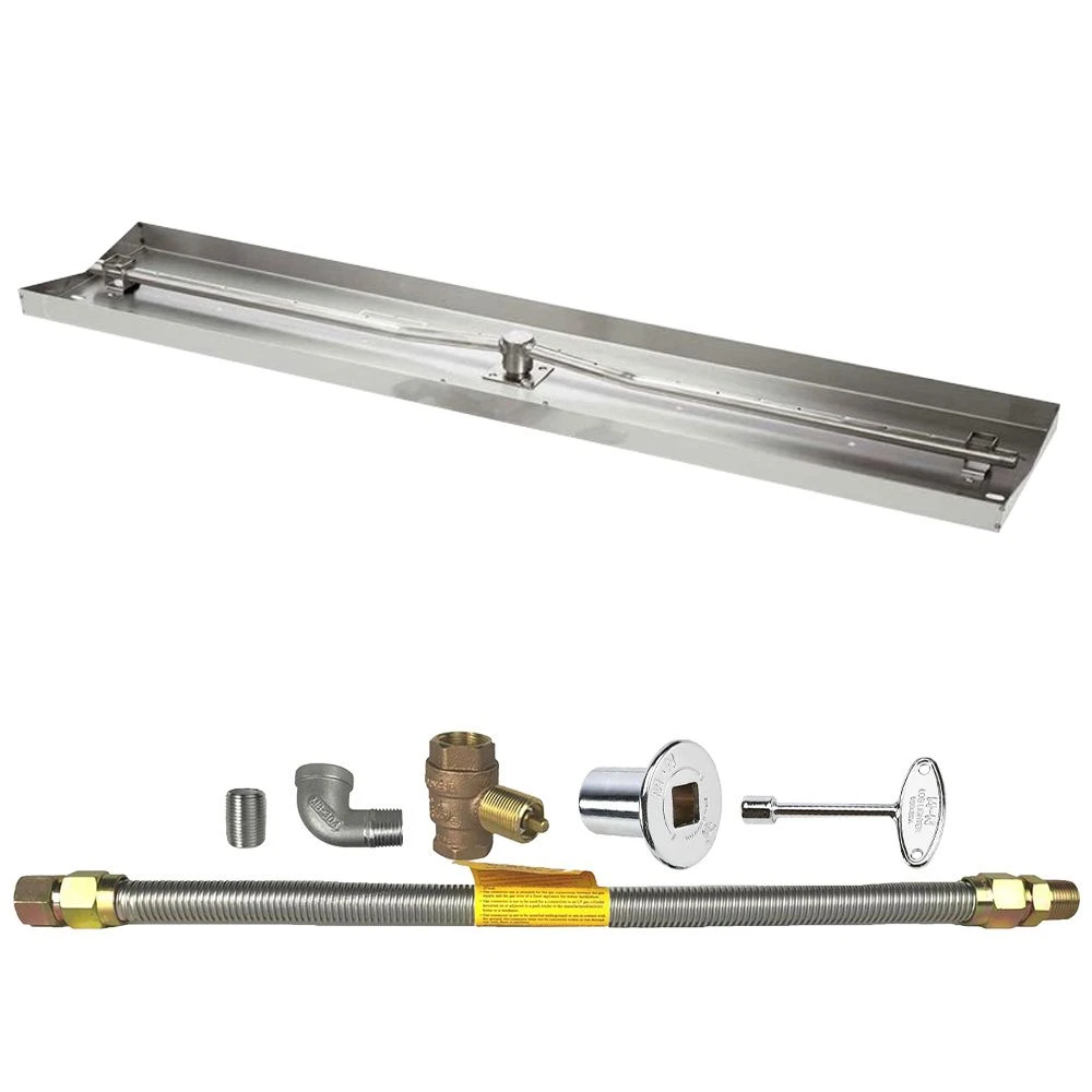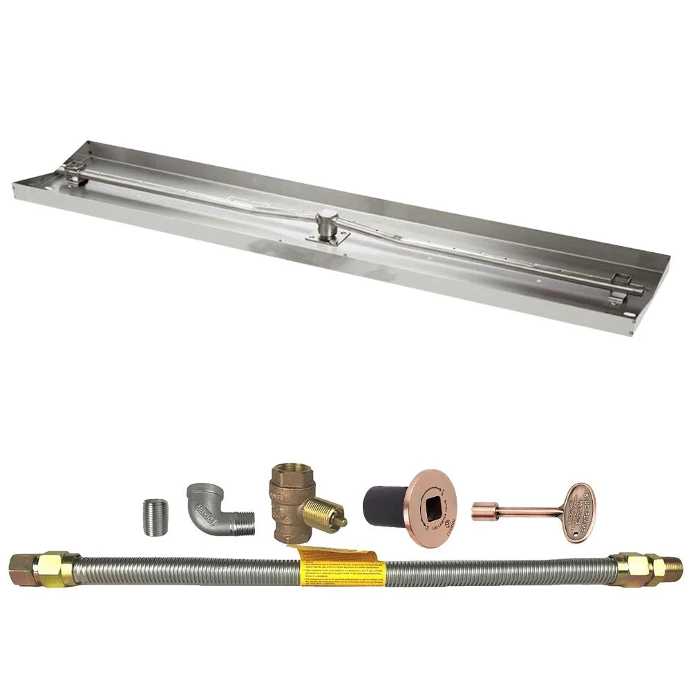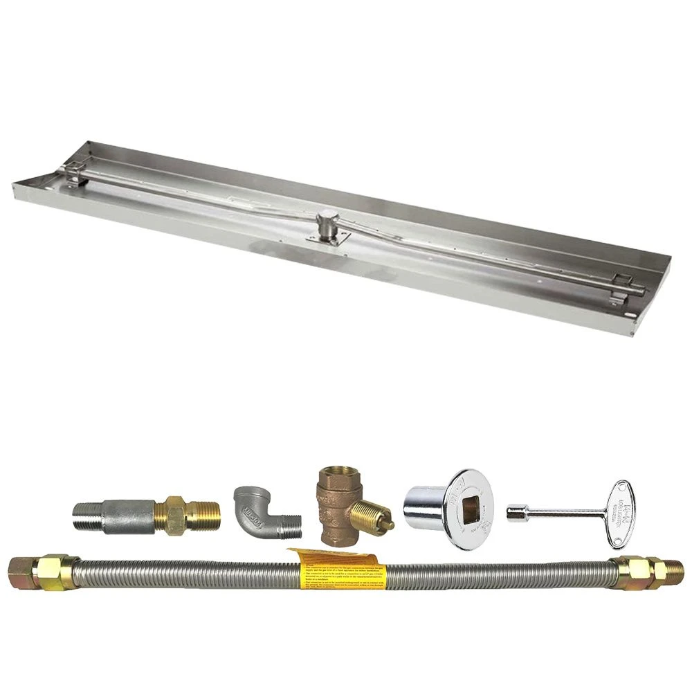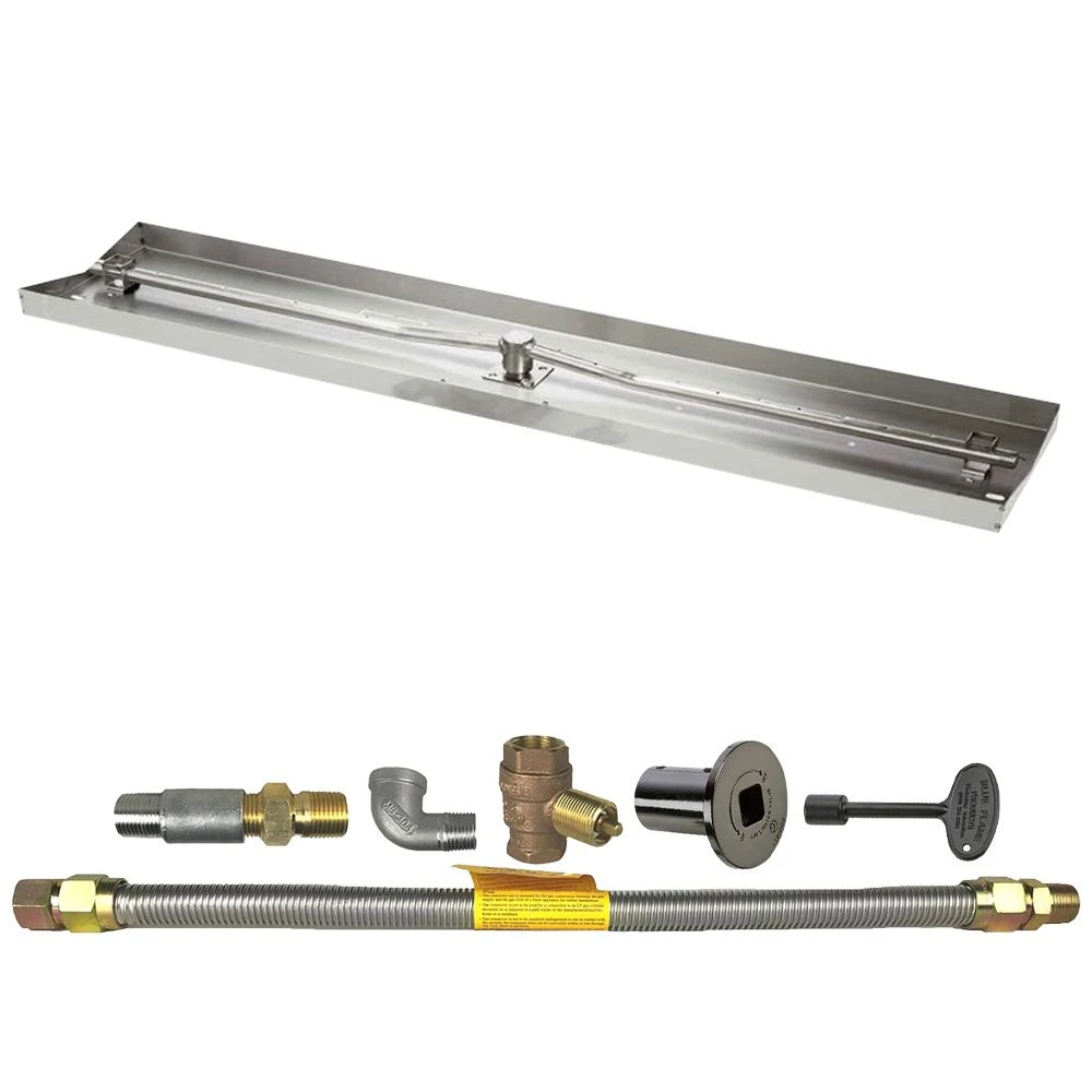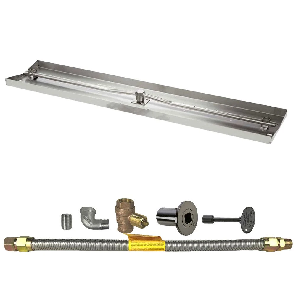 - Includes – Linear Interlink burner, stainless steel gas flex line, fittings, ball valve, and decorative flange with 3″ key