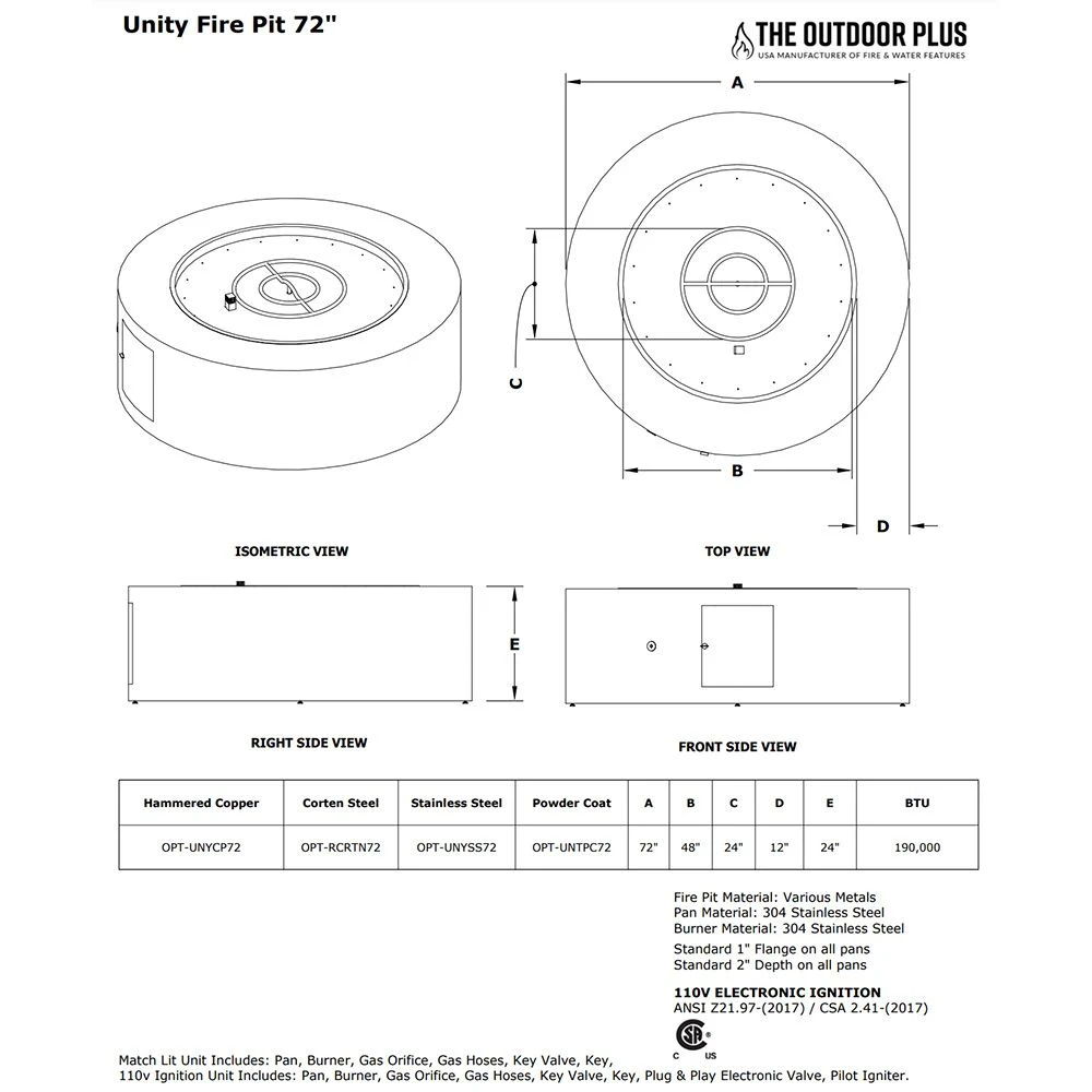 TOP Fires by The Outdoor Unity 72×24-Inch Round Powder Coated Steel Gas Fire Pit